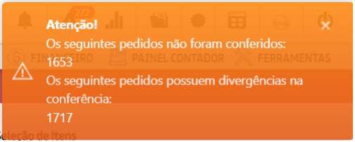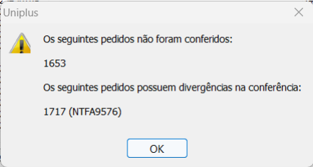 No momento do faturamento, caso alguma conferência esteja pendente será emitido um alerta. Abaixo temos exemplos na versão Desktop e WEB: