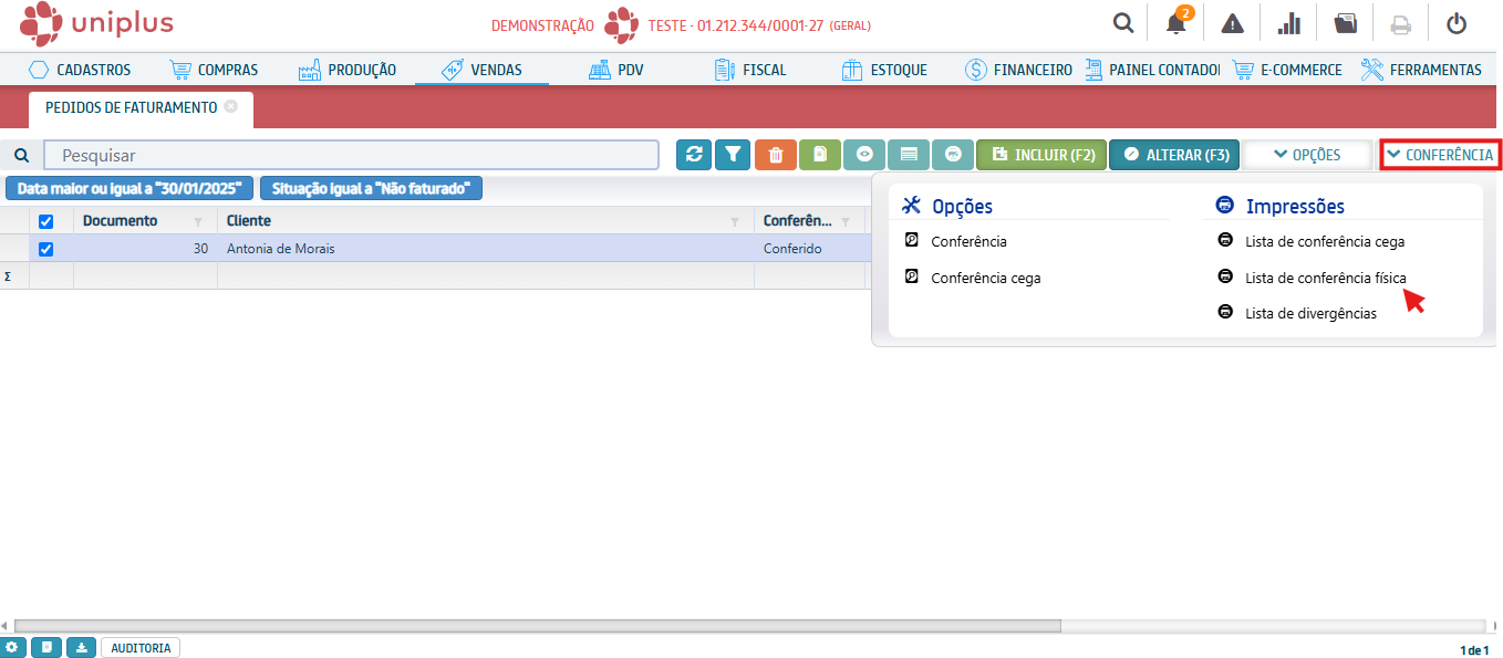 Realizando a Conferência de Pedido de Faturamento