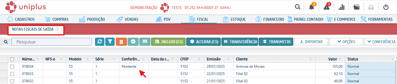 Realizando a Conferência da Nota Fiscal de Saída