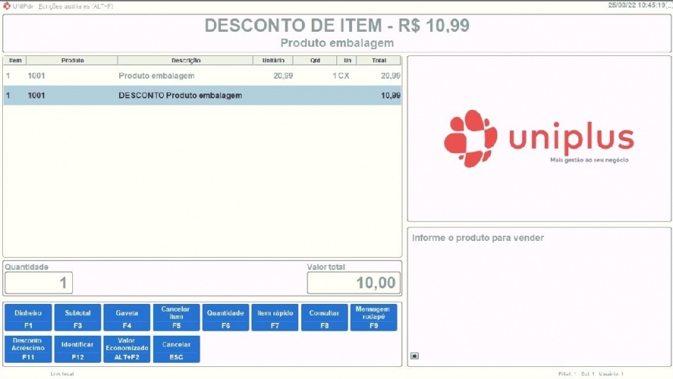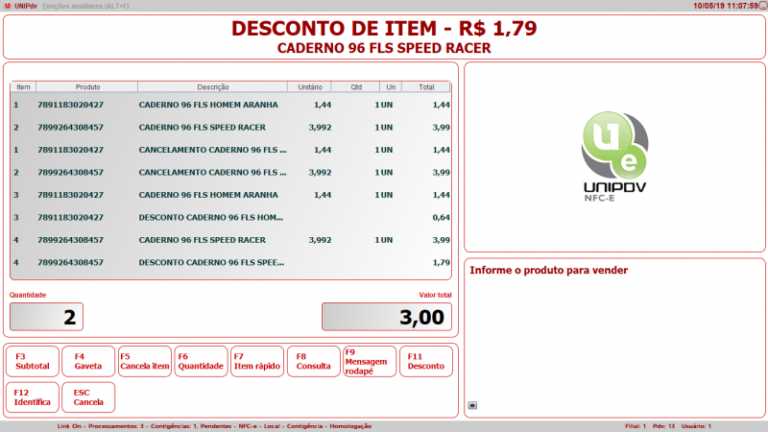 Na imagem abaixo, podemos observar o efeito que teremos no PDV quando a promoção for identificada entre os itens da venda: