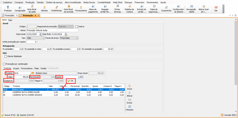 Após cadastrar, a promoção será utilizada tanto no PDV quanto em notas fiscais.