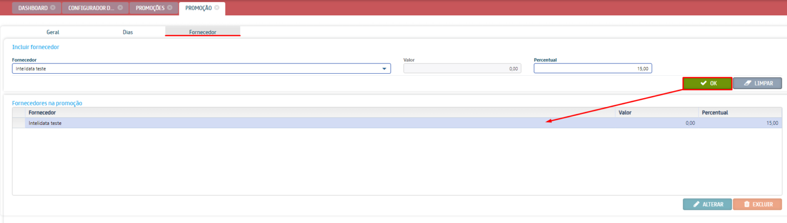Esta promoção é aplicada em fornecedores e, consequentemente, em seus respectivos produtos. Para adicionar essa promoção siga os passos: