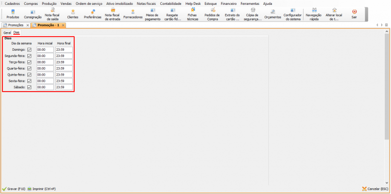- Promoção por dias da semana: habilita selecionar apenas os dias da semana em que a promoção será habilitada;