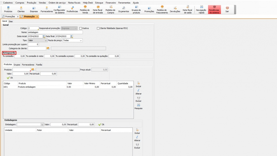 - Retaguarda: nesses campos, defina as configurações de comissão;