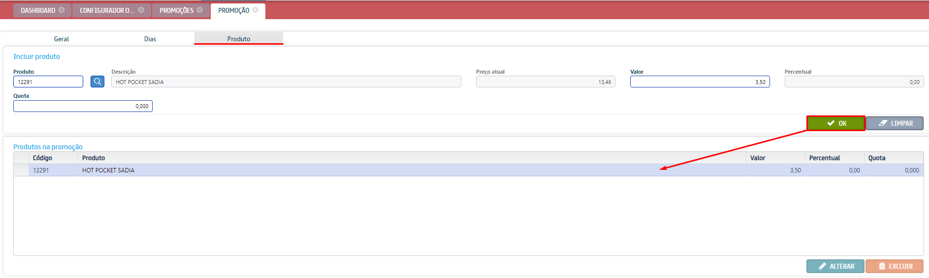 Nessa mesma aba também possuímos algumas sub-abas. No caso da Promoção por Embalagem, usaremos a sub-aba “Produtos“.