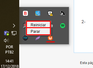 2- Para reiniciar ou parar o Yoda, na bandeja do Windows, clique com o botão direito do mouse em cima do Servidor Yoda, selecione a opção e informe a senha técnica do Uniplus;
